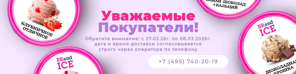 МИНИМАЛЬНАЯ СТОИМОСТЬ ЗАКАЗА НА ДОСТАВКУ - 3000 РУБ. (БЕЗ УЧЁТА СТОИМОСТИ ДОСТАВКИ). Уважаемые клиенты! Для оформления заказа с доставкой, пожалуйста, обратитесь по телефону +7 (495) 740-20-19. С уважением, команда BRandICE.